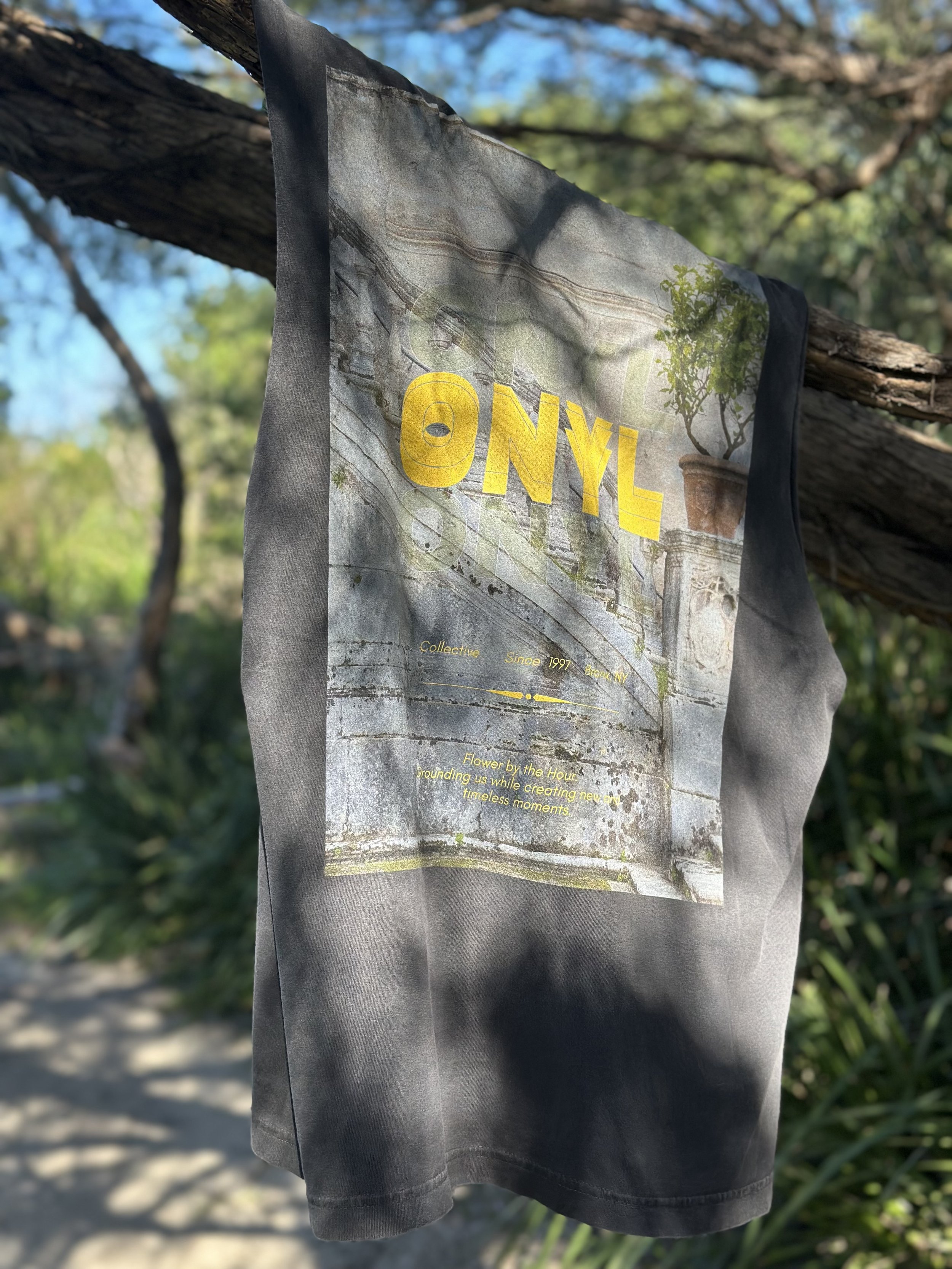 These shrink-free 100% cotton tees are meant to encourage us to get outside, smell the flowers and live in the present moment.